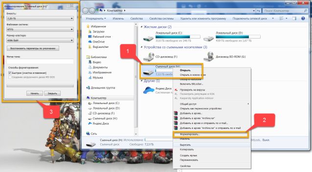 В этой статье мы разберём, как отформатировать флешку без специальных программ. Будем это делать через «мой компьютер» или windows 7 «компьютер».