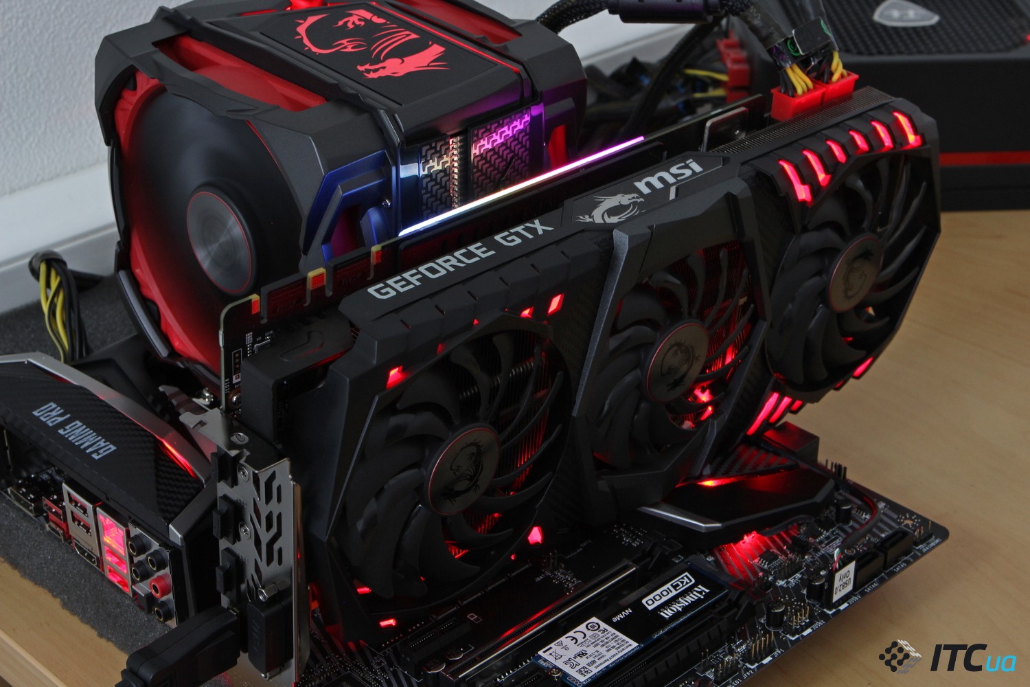 Тепловые трубки установлены со всех сторон. Для быстрого охлаждения установлены термопрокладки, которые позволяют моментально передавать тепло от чипсета радиатору. Три двухлопастных вентилятора с направляемым потоком обеспечивают интенсивную подачу воздуха. В конструкции этих устройств используют двойные подшипники, которые работают бесшумно.