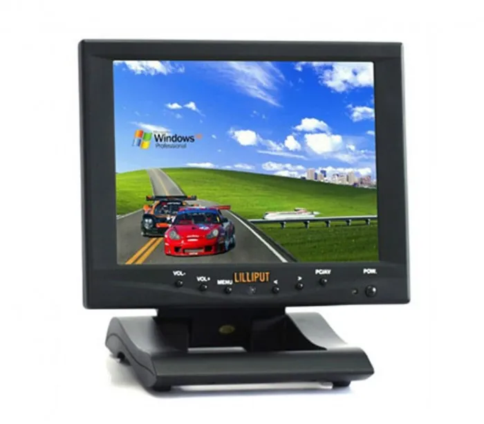 Один из самых миниатюрных мониторов нашего обзора выглядит как уменьшенная до 8” копия «взрослого» устройства, с подставкой, поддерживающей разные углы наклона, и кнопками управления, Разрешение матрицы составляет всего 1024*768, но при таком размере это не так страшно. Огромный набор входов позволяет подключать к нему множество устройств – не только мини-ПК, но и камеры, микроскопы, зонды, регистраторы, и так далее.