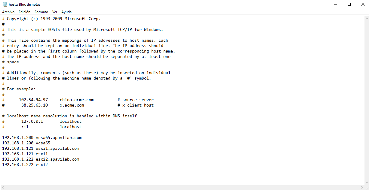 # Copyright (c) 1993-2009 Microsoft Corp. # # This is a sample HOSTS file used by Microsoft TCP/IP for Windows. # # This file contains the mappings of IP addresses to host names. # Each entry should be kept on an individual line. # The IP address should be placed in the first column followed # by the corresponding host name. # The IP address and the host name should be separated # by at least one space. # # Additionally, comments (such as these) may be inserted # on individual lines or following # the machine name denoted by a '#' symbol.# # For example: # # 102.54.94.97 rhino.acme.com # source server # 38.25.63.10 x.acme.com # x client host # localhost name resolution is handled within DNS itself. # 127.0.0.1 localhost # ::1 localhost