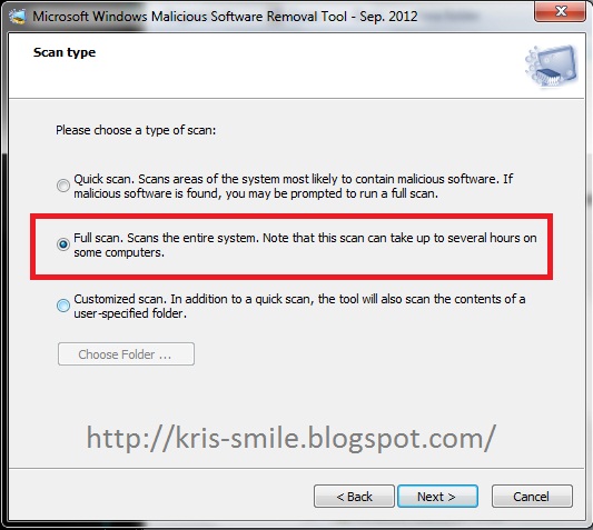 Возможно, наиболее важной причиной запуска MSRT вручную является выполнение полного сканирования, а не быстрого сканирования по умолчанию. Вы видите этот выбор во втором окне, показанном ниже.